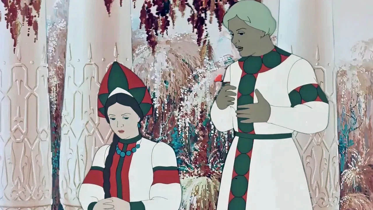 1952 / 0 hr 42 minAntes de emprender un viaje al extranjero, un padre comerciante pregunta a sus tres hijas qué les gustaría que les trajera. La mayor pide una tiara brillante, la del medio pide un marco a través del cual su rostro siempre parezca joven, y la menor (Nastenka) le pide a su padre que le traiga una hermosa flor escarlata como la que vio en sus sueños. Sus hermanas mayores se ríen de este simple deseo. El viaje del padre tiene éxito y encuentra todo lo que había venido a buscar, a excepción de la flor escarlata de Nastenka. Sin embargo, el barco se aleja y comienzan a regresar mientras el padre explora las tierras a su alrededor en busca de una flor escarlata.
