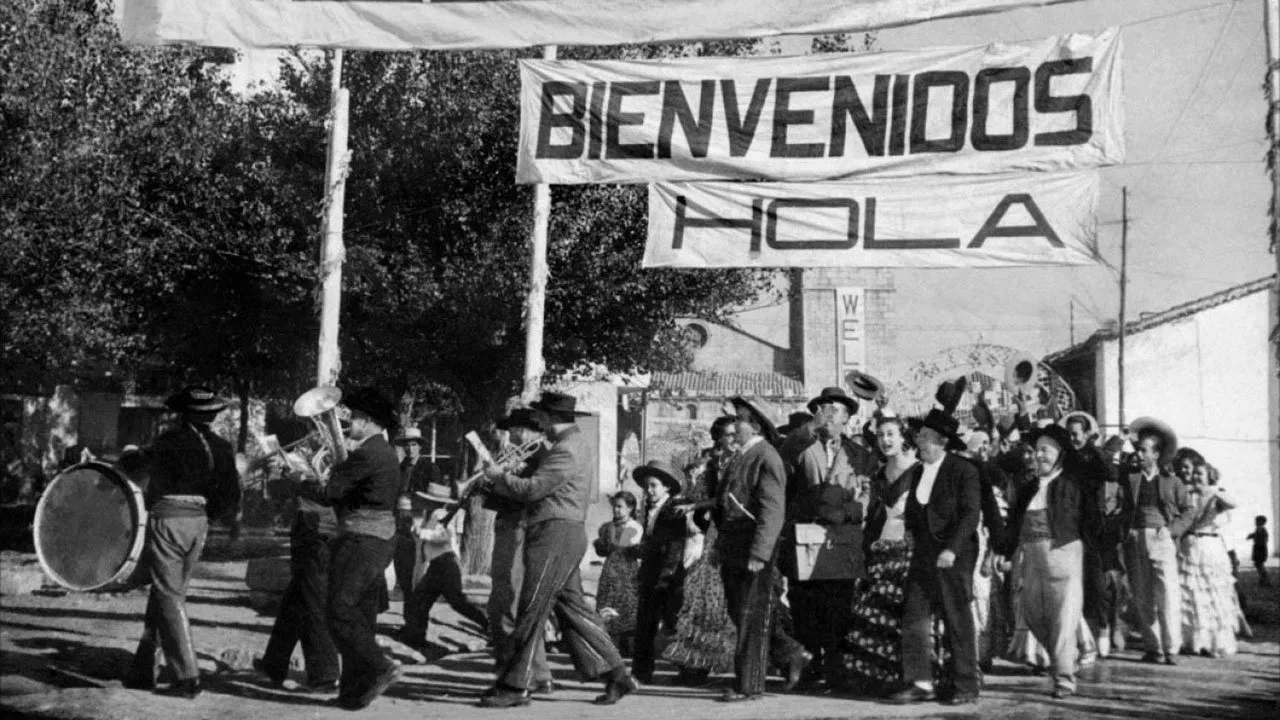 1953 / 1 hr 35 minAños 50. Villar del Río es un pequeño y tranquilo pueblo en el que nunca pasa nada. Sin embargo, el mismo día en que llegan la cantante folclórica Carmen Vargas y su representante, se recibe la noticia de la inminente visita de un comité del Plan Marshall (proyecto económico americano para la reconstrucción de Europa). La novedad provoca un gran revuelo entre la gente, y el bonachón alcalde del pueblo (Pepe Isbert) propone a los vecinos que se disfracen al más puro estilo andaluz para causar buena impresión a los americanos que vienen a repartir dinero.