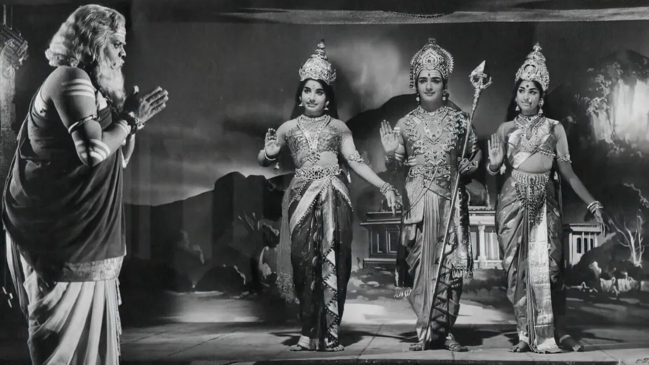 This expansive Hindu epic concerns Lord Muruga, also known as Kartikeya, son of the Krittikas. The film narrates the story of his birth, marriage, and acceptance of the post of the head of the army of heaven, commander-in-chief of the gods.