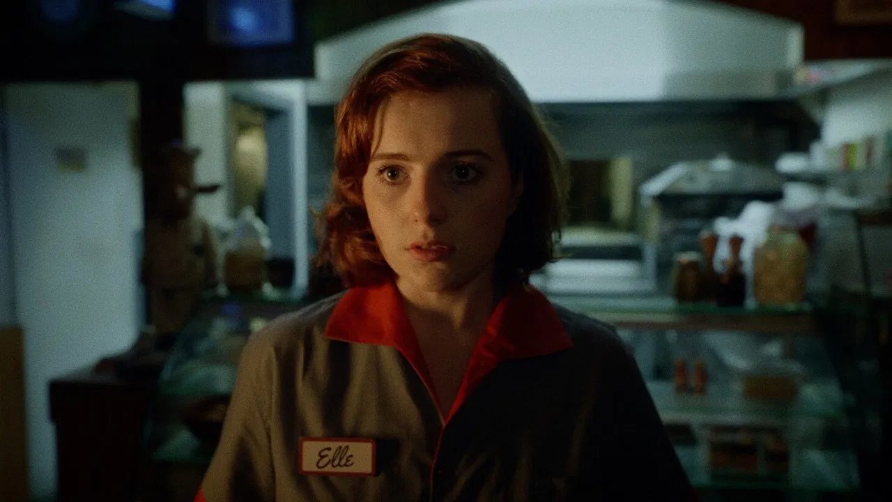 A waitress, while closing a café on a rainy night in London, is confronted by a mysterious older woman.