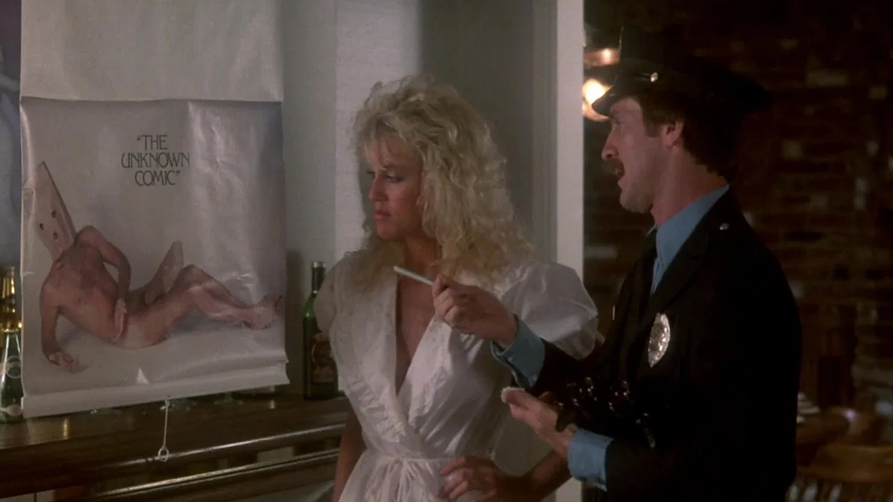 1984 / R / 1 hr 27 minMelvin es un patético conductor de una motocicleta policía que se degradó a trabajar en el turno de noche como castigo. Durante su deber fuera de tiempo, sin embargo, Melvin se convierte en su obsesión secreta: la comedia. Él se pone una bolsa de papel sobre su cabeza y realiza delante del público como "The Unknown Comic". Para equilibrar sus dos vidas, busca ayuda psiquiátrica para tratar de resolver quién quiere ser realmente.