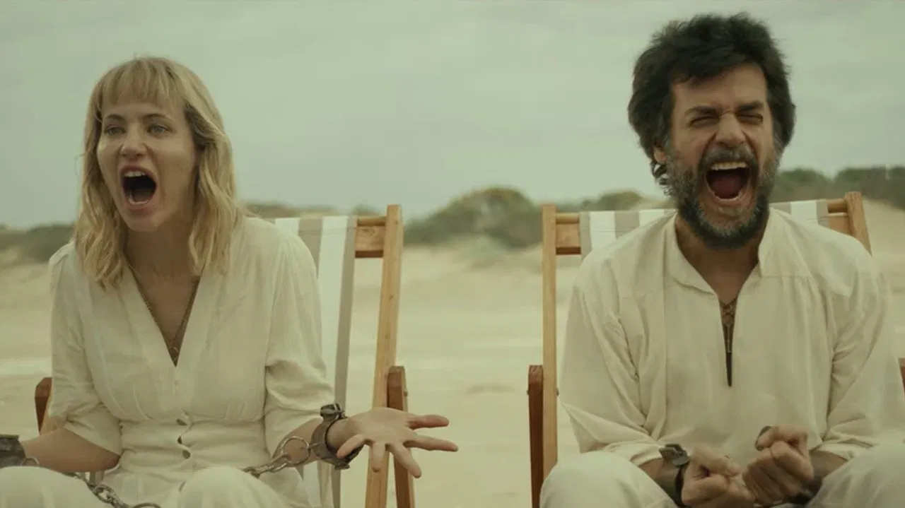 En una playa desierta, Matías (40) y Laura (35) disfrutan de un momento idílico frente al mar. Pero la marea crece y alcanza sus pies, revelando los grilletes que los atan a una base de concreto bajo la arena. Es solo cuestión de tiempo.