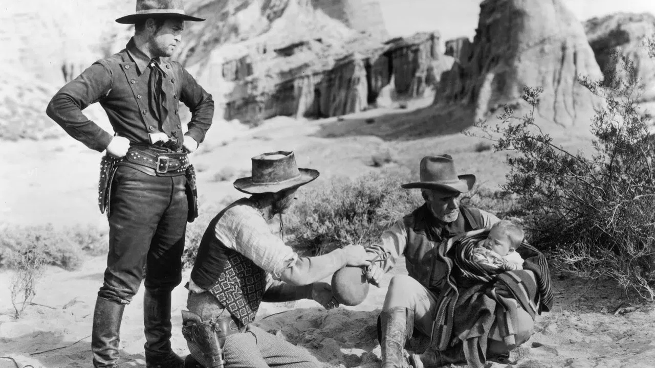 In a town called New Jerusalem, three bandits hold up a bank. After a gun battle with the townspeople, the three robbers retreat into the scorching Arizona desert. There, they happen upon an ill woman stranded with her child. As the mother dies, she begs the men to take care of her infant. The fugitives want to save the baby -- but to do so, they'll have to travel back to New Jerusalem, where they are wanted men. Remade as 3 Godfathers (1949).