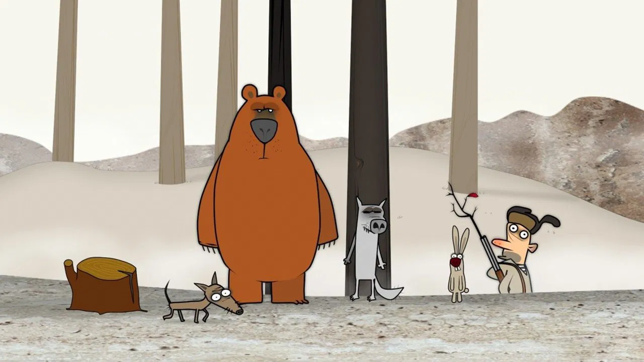 Three professional musicians — the Bear, the Rabbit and the Wolf — are practicing their art in the forest, when suddenly a hunter appears on the scene.