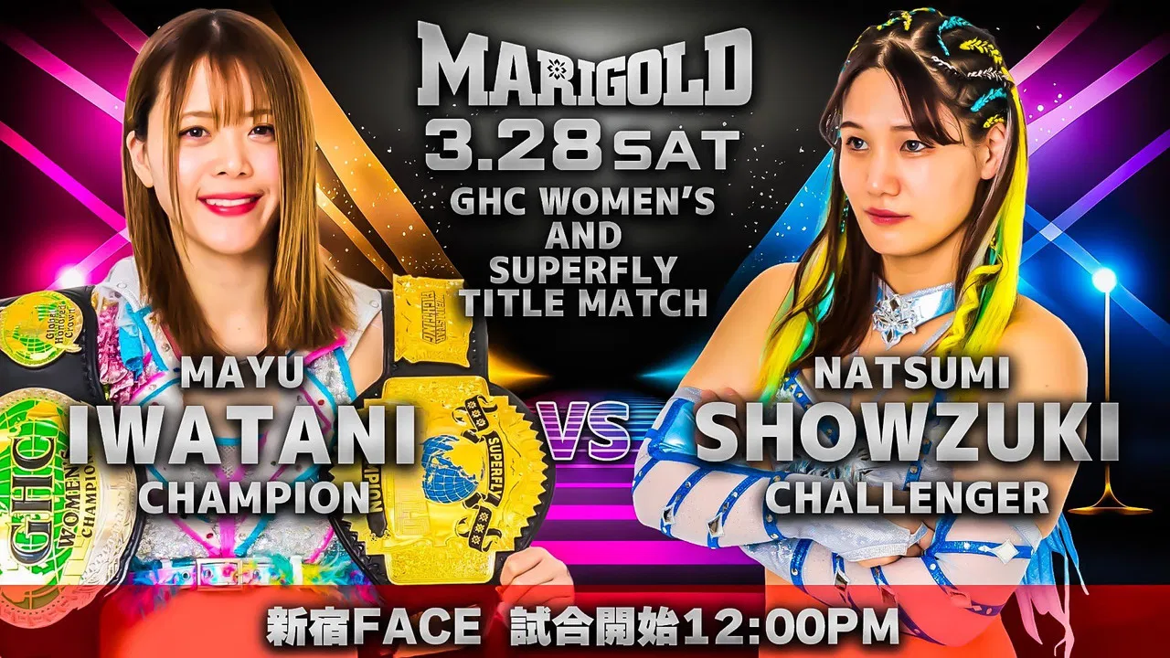 2026 / 2 hr 13 minMarigold Spring Victory Series 2026 ~ Day 6 was a professional wrestling event promoted by Dream Star★Fighting Marigold. It took place on March 28, 2026 at Shinjuku FACE in Tokyo, Japan. In the main event, Mayu Iwatani defended the GHC Women's and Marigold Super Fly Championships against Natsumi Showzuki in a double-title match.
