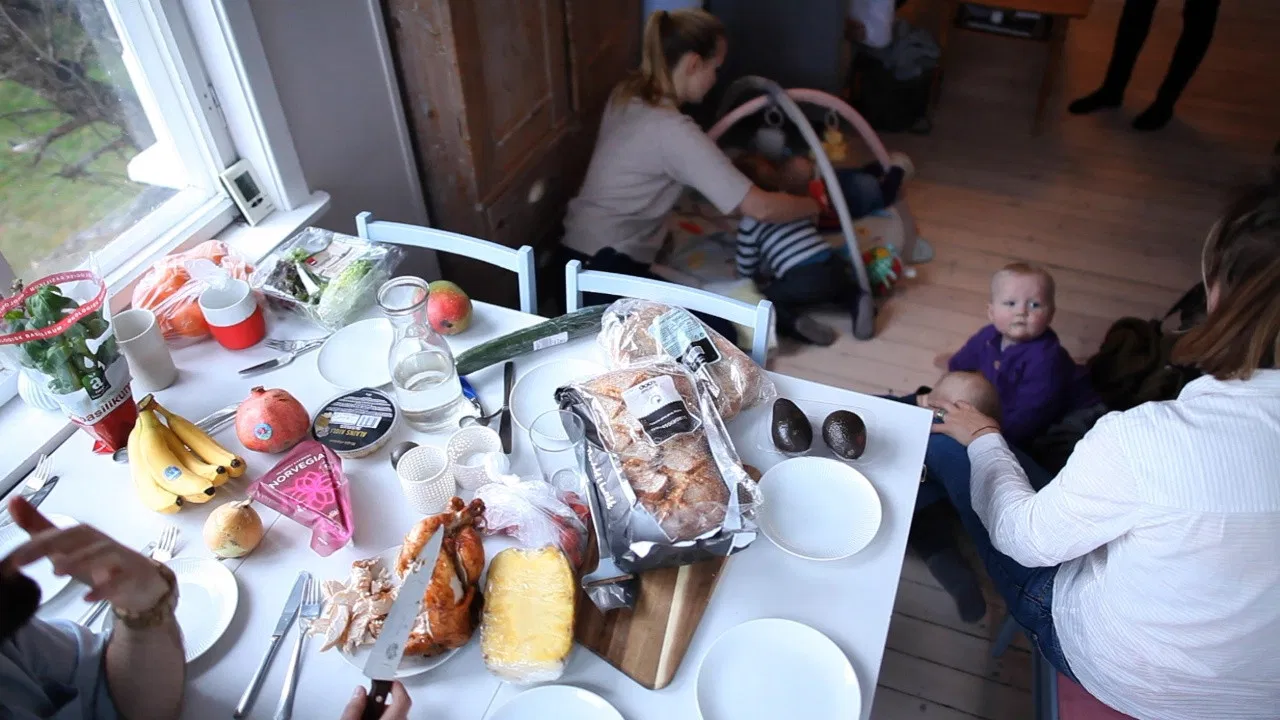 We follow a maternity group for a year. Parents and babies who are put together in groups of the health station and who meet at each other's home and eat lunch. Some of them have big plans. They will buy and sell property. Some are concerned about doing things right. Can babies eat cucumbers? What about cheese?