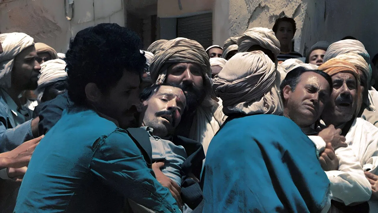 Festival de Cine de Cannes, 1975, Crónica de los años ardientes de Mohamed Lakhdar-Hamina recibe la Palma de Oro. Esta es la primera vez que una película africana. Crónica minuciosa de la evolución del movimiento nacional argelino desde 1939 hasta el estallido de la revolución el 1 de noviembre de 1954, la película demuestra inequívocamente que la "Guerra de Argelia" no es un accidente de la historia, sino un lento proceso de revueltas y sufrimiento. , ininterrumpidamente, desde el inicio de la colonización en 1830, hasta este "Día de Todos los Santos Rojo" del 1 de noviembre de 54. En seis capítulos, la película pinta el cuadro despiadado de la historia política y bélica de la Argelia colonial. En el centro, Ahmed despierta poco a poco a la conciencia política contra la colonización, bajo la mirada de su hijo, símbolo de la nueva Argelia, y de Miloud, medio loco arengador, medio profeta, encarnación de la memoria popular de la revuelta, de la liberación. de Argelia y su pueblo.