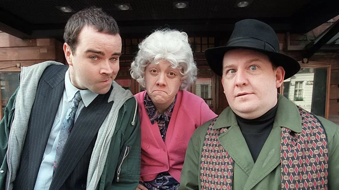 1999Chewin' the Fat is a Scottish comedy sketch show, starring Ford Kiernan, Greg Hemphill and Karen Dunbar. Comedians Paul Riley and Mark Cox also appeared regularly on the show. Chewin' the Fat first started as a radio series on BBC Radio Scotland. The later television show, which ran for four series, was first broadcast on BBC One Scotland, but series three and four, as well as highlights from the first two series, were later broadcast to the rest of the United Kingdom. Although the last series ended in February 2002, 6 Hogmanay specials were broadcast and offered on DVD when purchasing the Scottish Sun between 2000 to 2005, one every year. Chewin' the Fat gave rise to the spin-off show Still Game, a sitcom focusing on the two old male characters Jack and Victor. The series was mostly filmed in and around Glasgow and occasionally West Dunbartonshire. The English idiom to chew the fat means to chat casually, but thoroughly, about subjects of mutual interest.