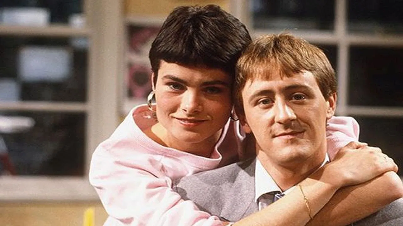 1986The Two of Us is an ITV comedy series produced by London Weekend Television, and starring Nicholas Lyndhurst and Janet Dibley as Ashley Phillips and Elaine Walker, an unmarried couple living together, at a time when this was becoming increasingly common in Britain, but still considered slightly controversial in some circles. While Ashley was keen for the pair to get married and would regularly propose, Elaine saw no reason to get married and was happy to keep her independence. Ashley's roguish grandfather Perce (played by Patrick Troughton, but later by Tenniel Evans after Troughton's death) was supportive of the couple, but Ashley's domineering mother (Jennifer Piercey) disapproved and constantly urged the pair to marry. Ashley's suppressed father (Paul McDowell) seemed less upset, but generally backed up his wife in the hope of a quiet life and the odd sherry.