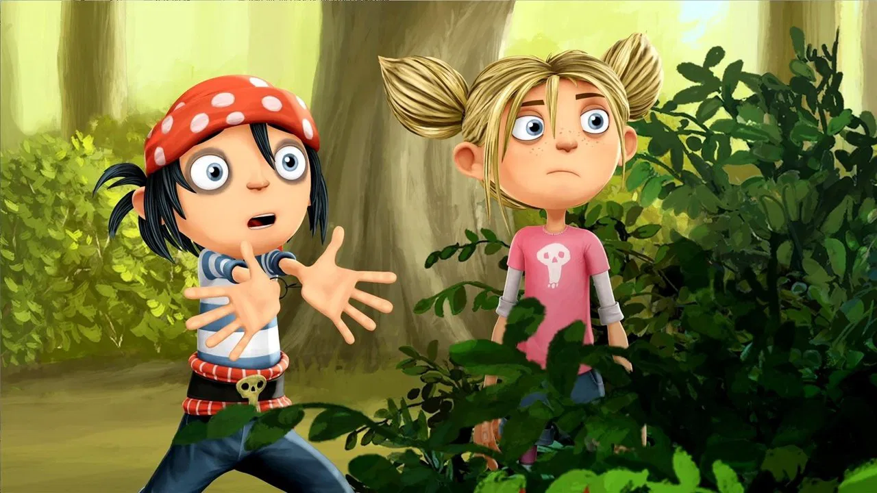 A pirate and a landlubber: it’s double trouble in Dull-on-Sea! Ah-haaar! At Dull-on-Sea the (far too) quite life is suddenly turned upside down by the appearance of… a family of pirates ! For Matilda the arrival of these new neighbours is a dream come true. With Jim Lad, the Jolley-Rogers’ son, around, there’s no chance of getting bored! She hopes they’ll never ever go away again! Despite (or because of!) their differences an unshakeable complicity is formed between Jim and Matilda. Best friends and comrades, they get up to all sorts of scrapes, shattering the calm of their tiny town, blowing the conventions of its well-disciplined residents sky high and turning every day into a fresh adventure.