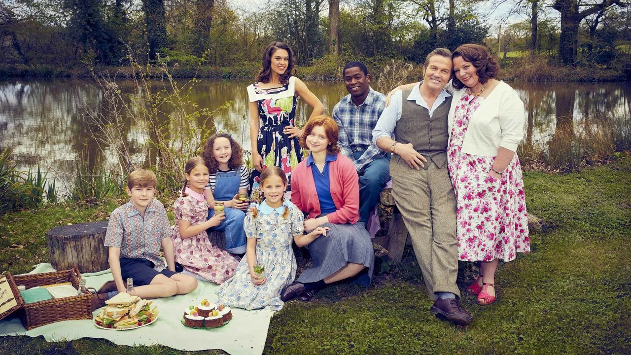 2021Ambientada a fines de la década de 1950, The Larkins sigue al comerciante de ruedas de oro Pop Larkin y su esposa Ma, junto con sus seis hijos, incluida la hermosa Mariette, mientras disfrutan de su idílico y hermoso paraíso en Kent.