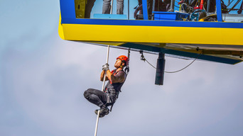 Chris aprende a domar su respuesta al estrés caminando sobre una aterradora grúa.