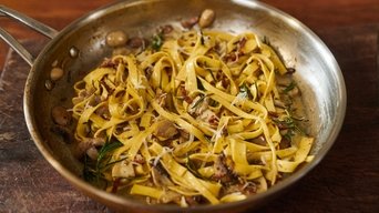 Jamie comienza su nueva serie de recetas elaboradas en una única sartén con una sencilla pero deliciosa Carbonara con champiñores. Más tarde reinventa un pastel de pescado preparando un impresionante y sabroso Pastel de masa filo de langostinos y salmón y, para terminar, elabora un festín de Cordero asado con dukkah, un proceso en el que comparte trucos que intensifican el sabor y aceleran la cocción.