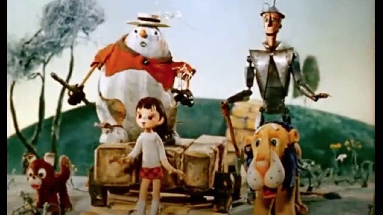 1973The Wizard of the Emerald City (Russian: Волшебник Изумрудного города) is a ten-part stop-motion adaptation of the first book in Alexander Volkov's Magic Land series. Produced by Ekran, it is believed to have aired monthly from around December 1973 to September 1974. Because of the wicked Gingema, a young girl named Ellie and her little dog Totoshka are swept away to the Magic Country, where incredible adventures await.